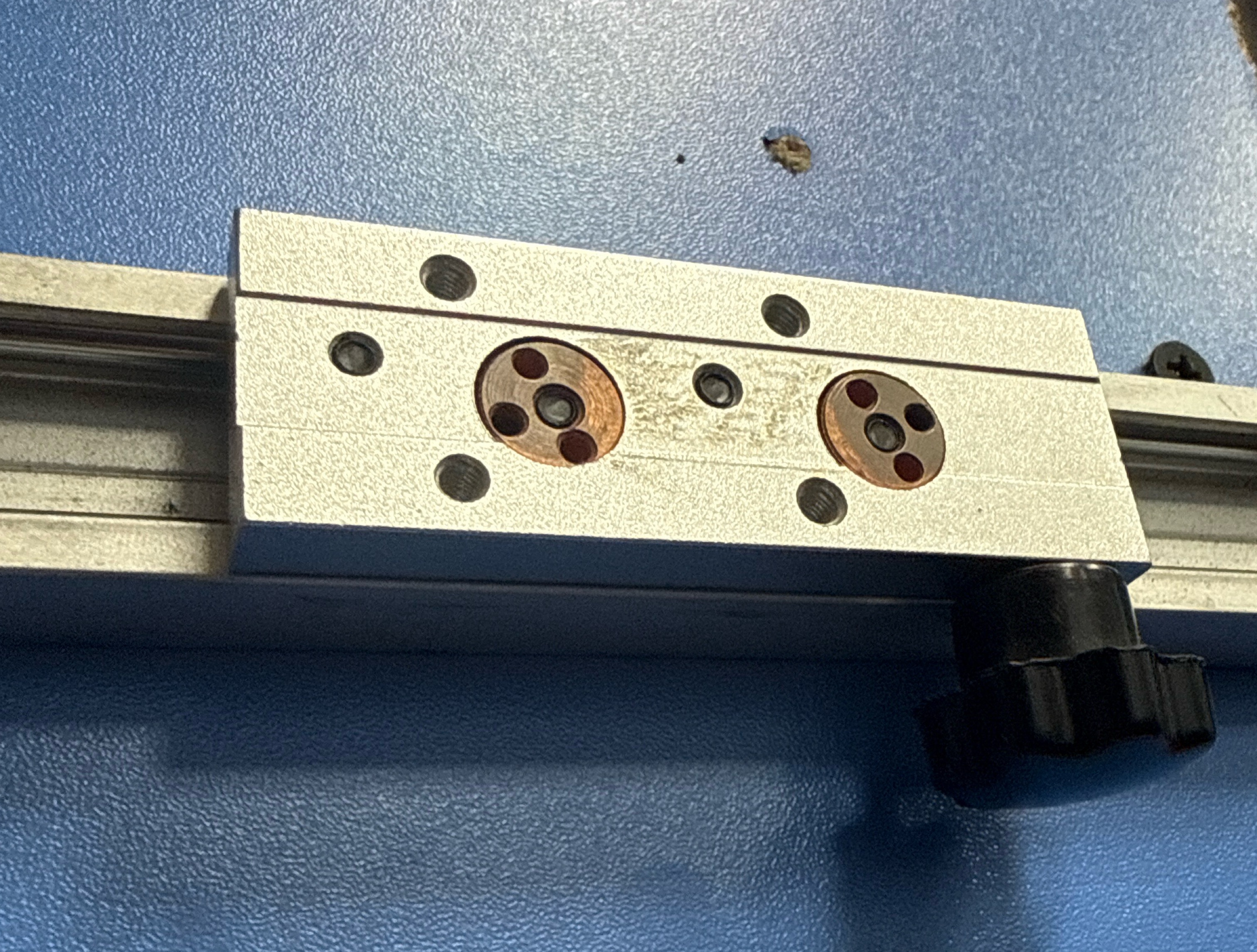 Каретки с четырьмя закаленными профильными роликами. Два фиксированных и два с эксцентриками, позволяющие делать любой преднатяг.